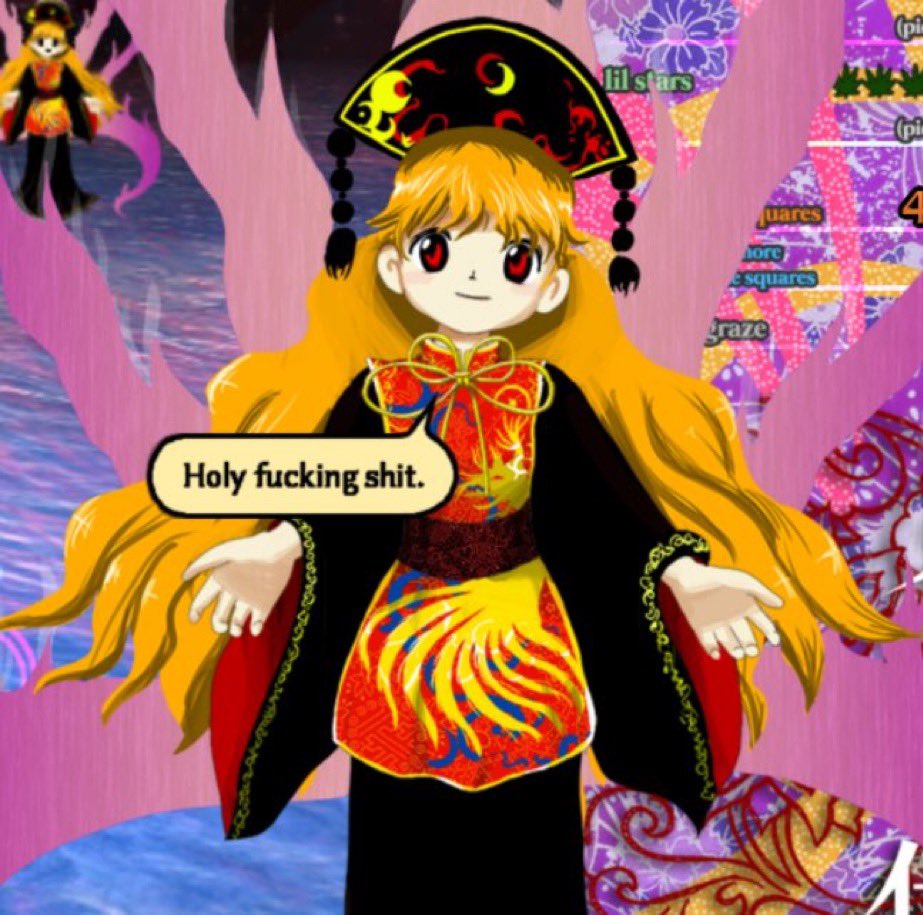 >Part of Touhou's appeal is how vague and open everything is, I think. No maps, no passing of time, barely any characterization, even of the most important charactersI agree with you 100%. The soul of Touhou is the fanon interpretations.