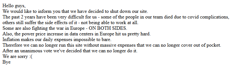 https://archive.org/details/romhacking.net-20240801It seems some psychopaths on discord and twitter tried to steal the site from under him or something? I don't know, but it was still an active site with new uploads today so this is awful. "ROM hacking" is also synonymous with "ROM translating", from the scripts to the software used to make it possible patch them. I've used the site for like 15 years, most recently a few months ago since I'm not too big on non-translation rom hacks these days.