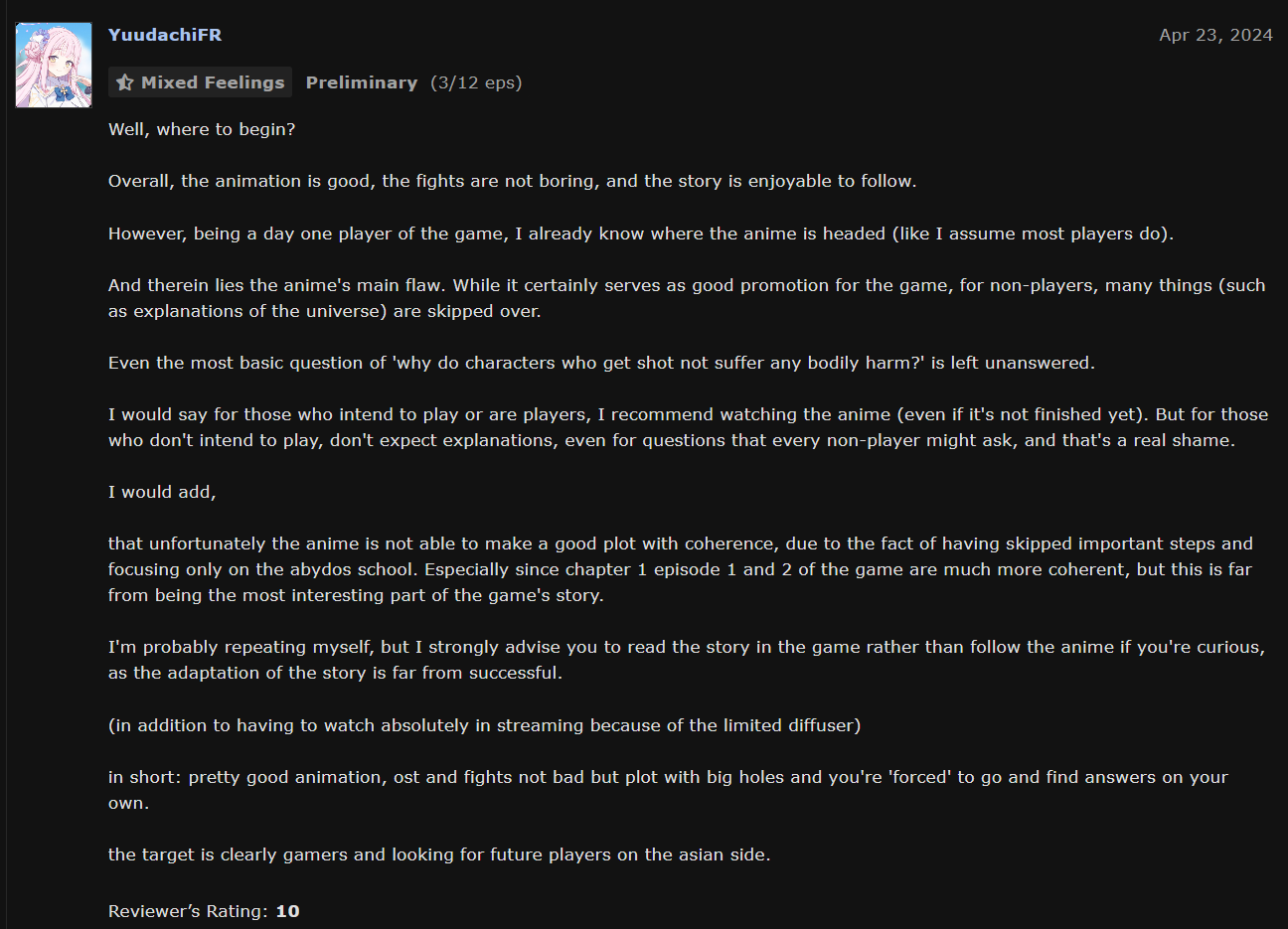 What the heck am I reading? Blue Archive, right? When I looked at threads for it people aren't even talking about the anime and instead doujin stuff or gacha events. It's no wonder it's so low quality when it doesn't need to be anything else.