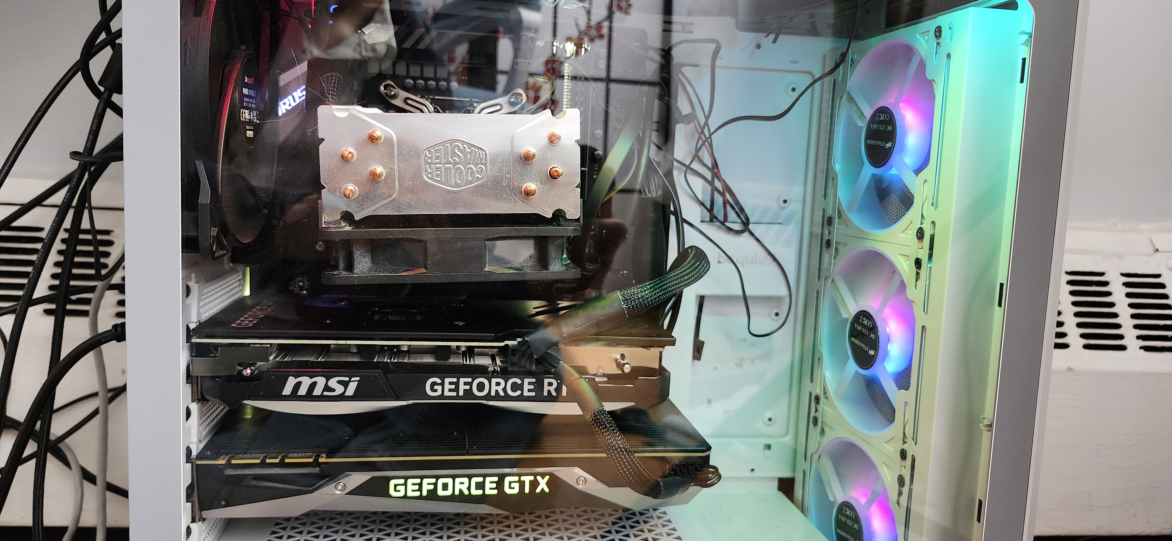 nvidia drivers messed up as soon as it detected two cards. I forget if I've had this issue in the past, but reinstalling drivers before I can test