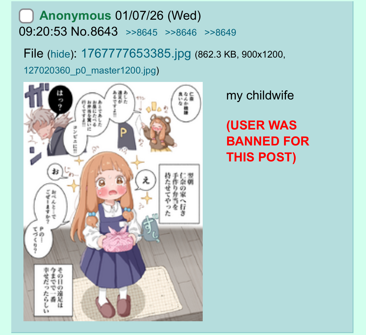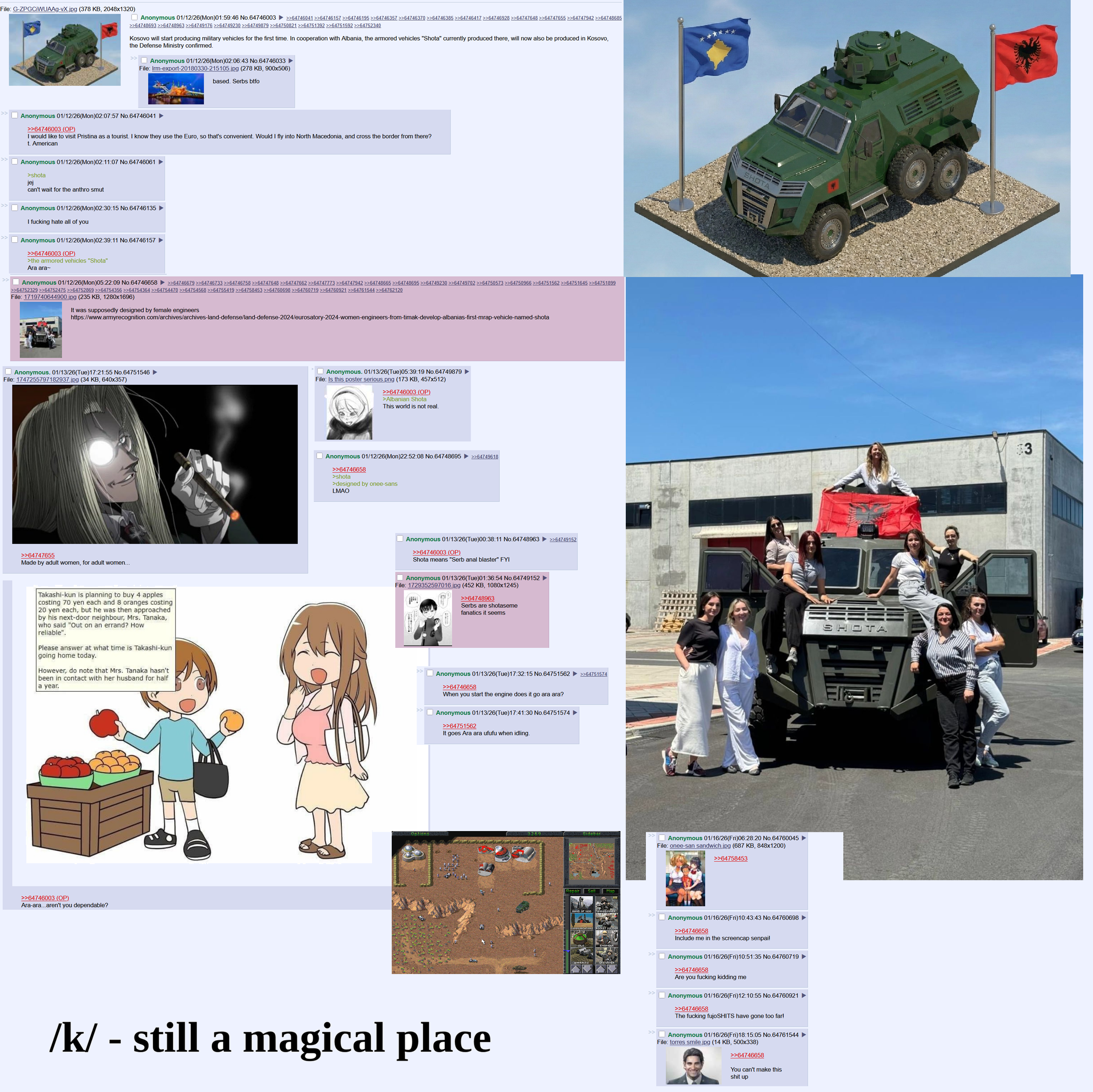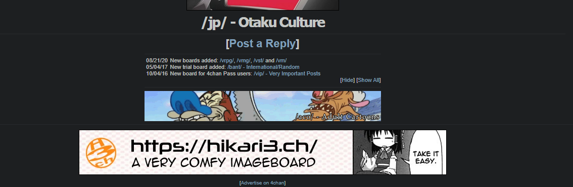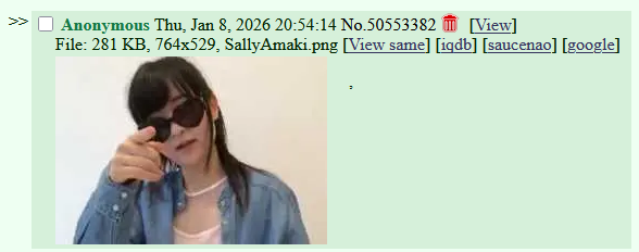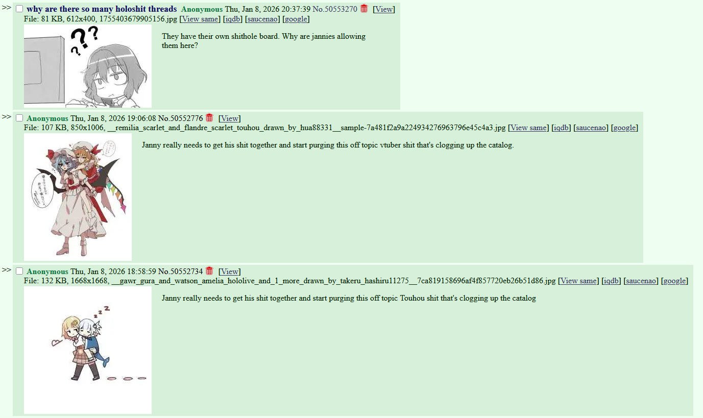 I recently went on /wsr/ after almost a decade and it got me thinking about how that board used to have its own weird culture when it was originally made: "Nicofag, "Took a while but thanks", the akari.png edits, even the board-tan stuff (board-tan stuff kinda died with the Shimmie though, but at least /wsr/'s board-tan lives on through the banner).