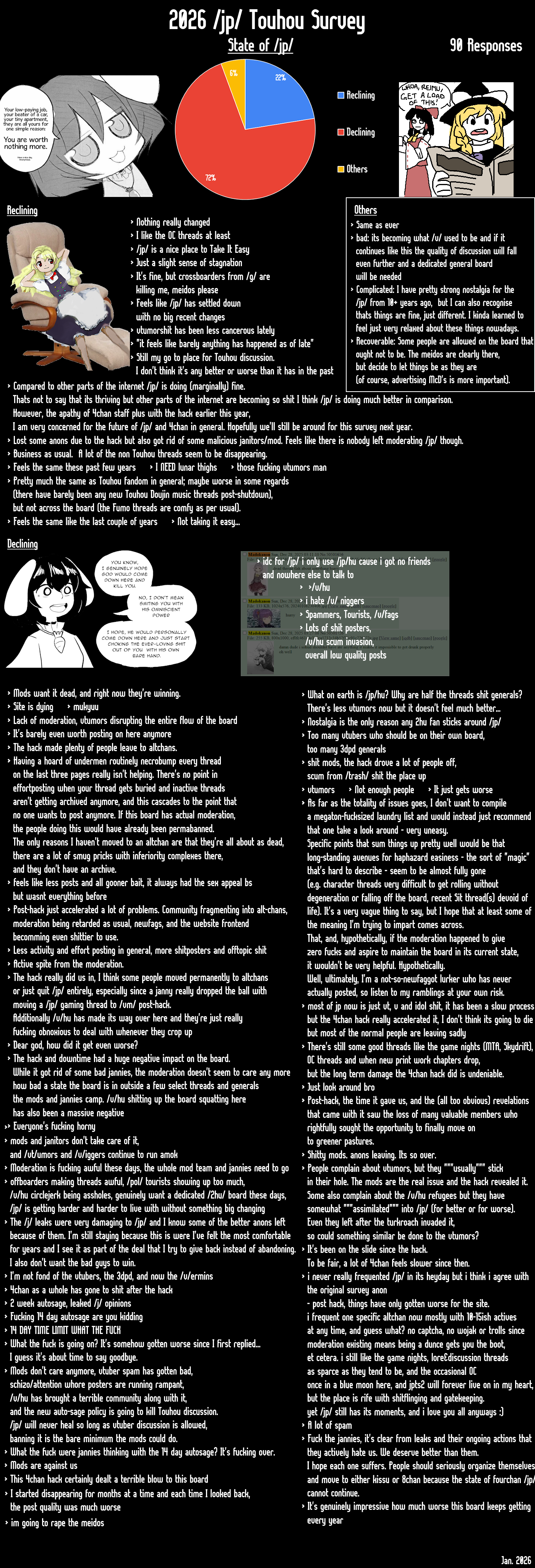 >>168023I'd say that maybe this could be further impetus for people to branch out from 4chan, but I have to assume that anyone still on 4/jp/ today is in it for the long haul. They'll adapt, I guess.